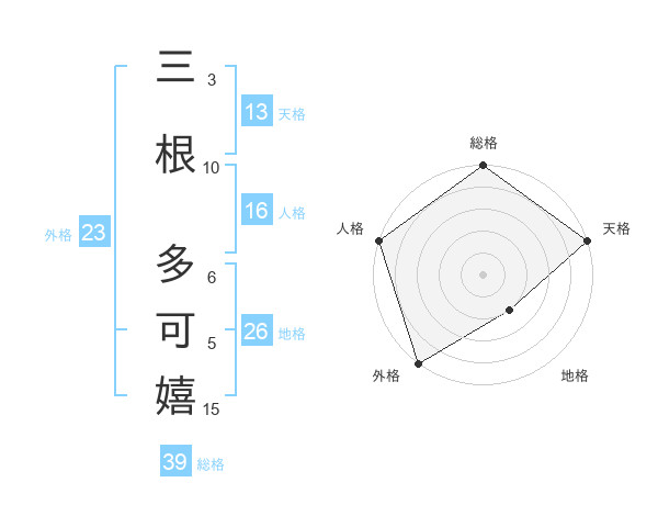 三根 多可嬉さんを姓名の画数から五運を鑑定