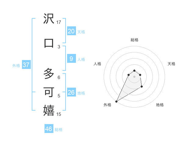沢口 多可嬉さんを姓名の画数から五運を鑑定