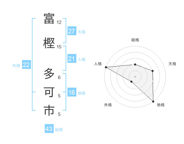 富樫 多可市さんを姓名の画数から五運を鑑定