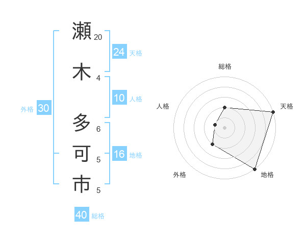 瀬木 多可市さんの天格は24画の5点!