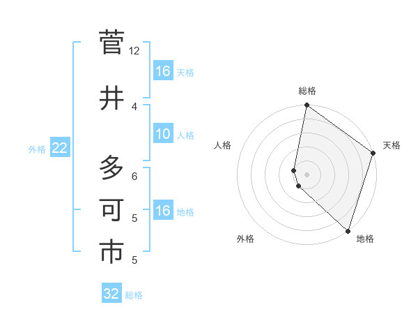 菅井 多可市さんの総格は32画の5点!