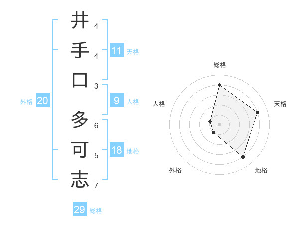 井手口 多可志さんの総格は29画の4点!