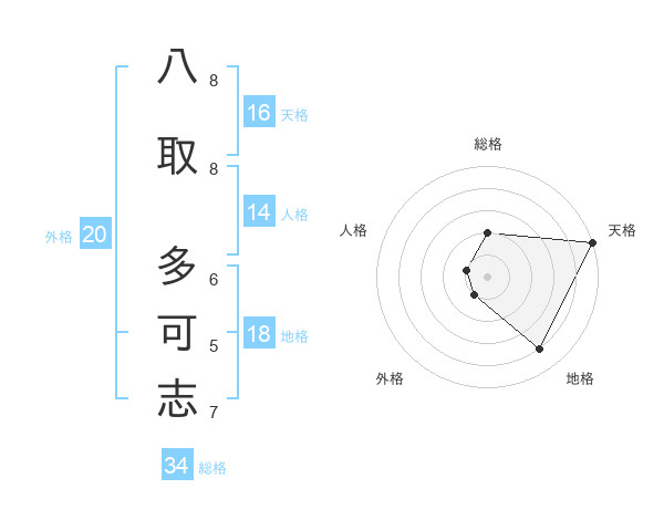 八取 多可志さんの天格は16画の5点!