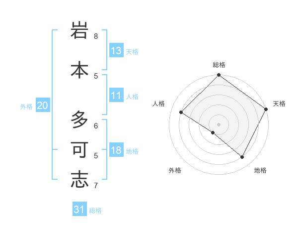 岩本 多可志さんを姓名の画数から五運を鑑定