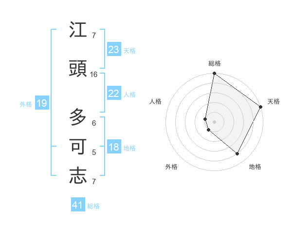 江頭 多可志さんを姓名の画数から五運を鑑定