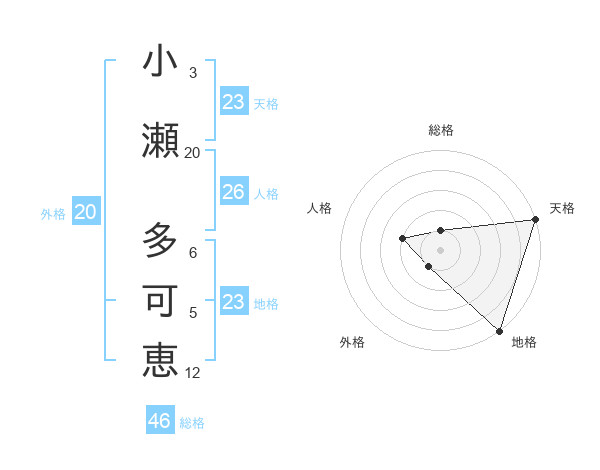 小瀬 多可恵さんを姓名の画数から五運を鑑定