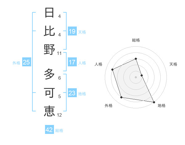 日比野 多可恵さんを姓名の画数から五運を鑑定