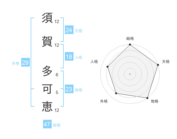 須賀 多可恵さんを姓名の画数から五運を鑑定