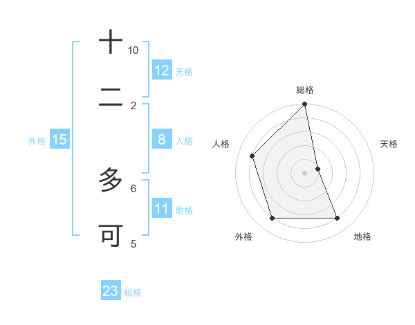 十二 多可さんの総格は23画の5点!