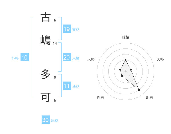 古嶋 多可さんの総格は30画の2点!
