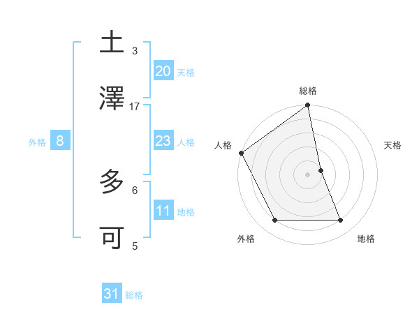 土澤 多可さんの総格は31画の5点!