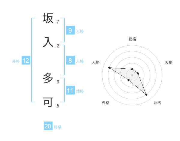 坂入 多可さんの総格は20画の1点!