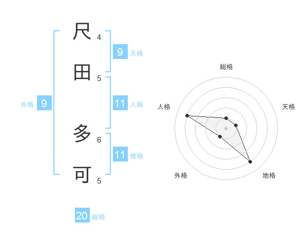尺田 多可さんの総格は20画の1点!