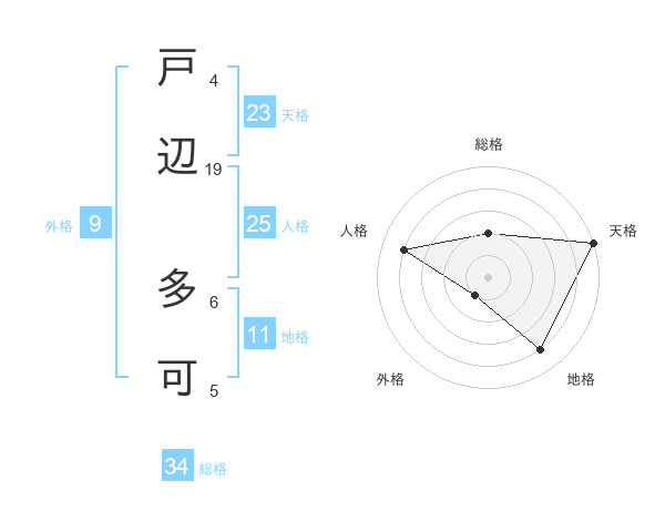 戸辺 多可さんの総格は34画の2点!