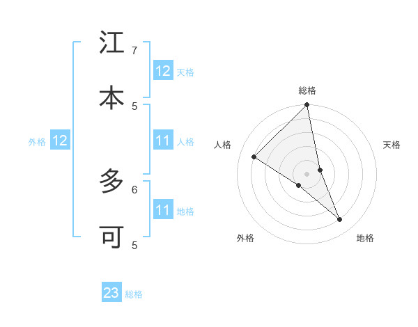 江本 多可さんの総格は23画の5点!