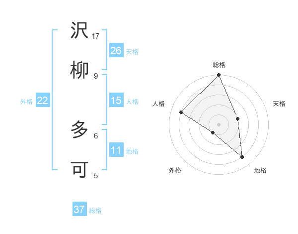 沢柳 多可さんの総格は37画の5点!