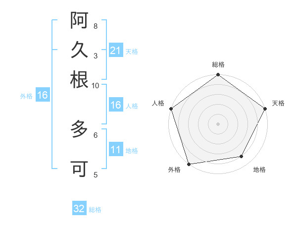 阿久根 多可さんの総格は32画の5点!