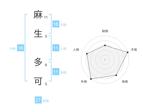 麻生 多可さんの天格は16画の5点!