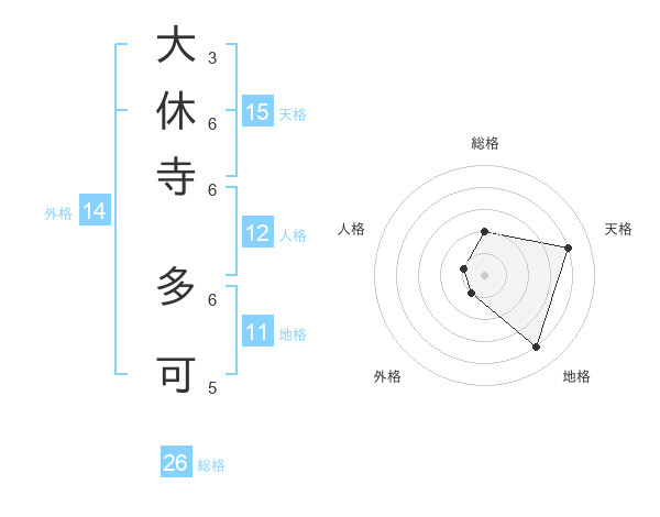 大休寺 多可さんを姓名の画数から五運を鑑定