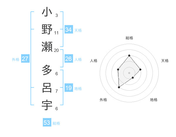 小野瀬 多呂宇さんを姓名の画数から五運を鑑定