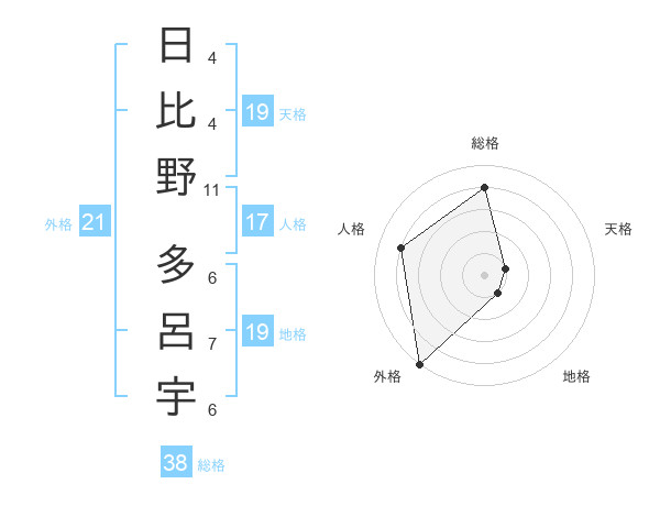 日比野 多呂宇さんを姓名の画数から五運を鑑定