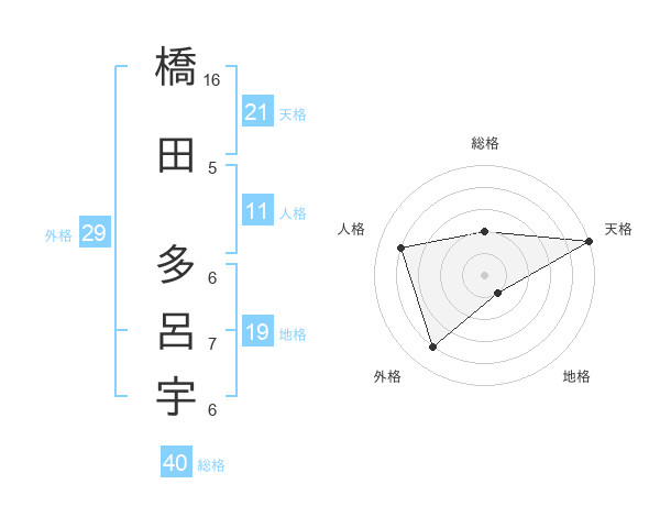 橋田 多呂宇さんを姓名の画数から五運を鑑定