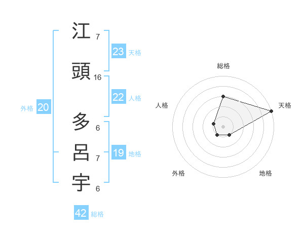 江頭 多呂宇さんを姓名の画数から五運を鑑定