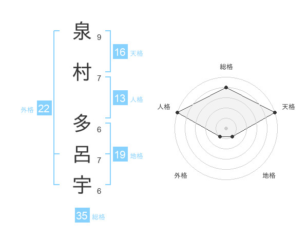 泉村 多呂宇さんを姓名の画数から五運を鑑定