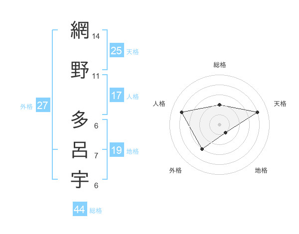 網野 多呂宇さんを姓名の画数から五運を鑑定