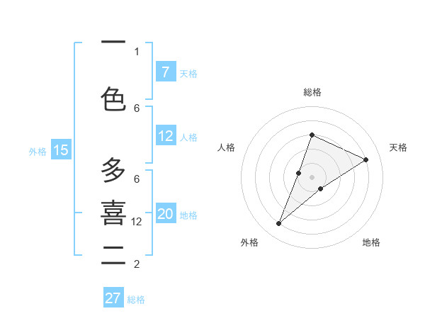 一色 多喜二さんを姓名の画数から五運を鑑定