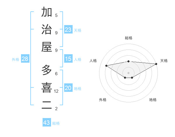 加治屋 多喜二さんを姓名の画数から五運を鑑定