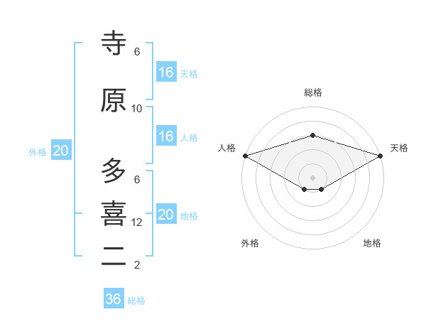 寺原 多喜二さんの天格は16画の5点!
