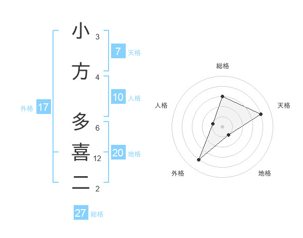 小方 多喜二さんを姓名の画数から五運を鑑定