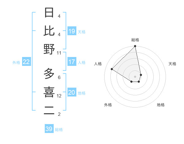 日比野 多喜二さんを姓名の画数から五運を鑑定