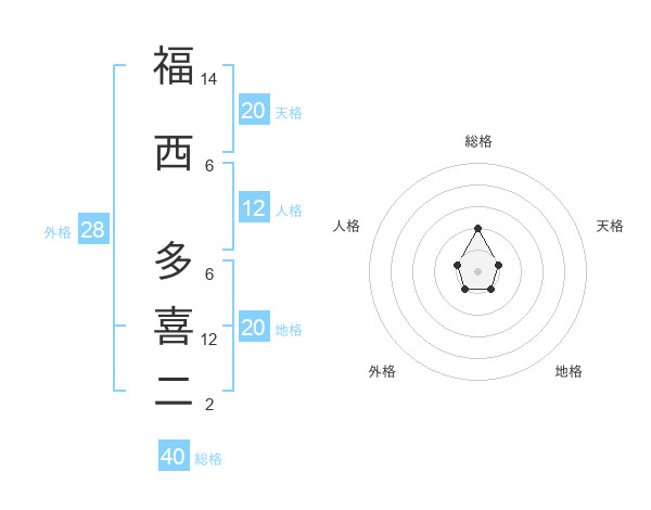 福西 多喜二さんの総格は40画の2点!