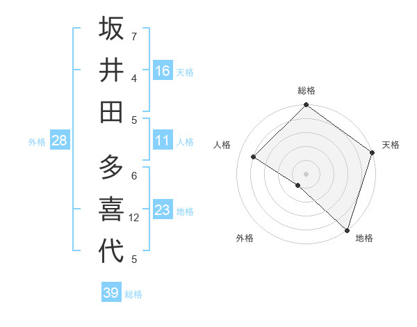 坂井田 多喜代さんの総格は39画の5点!