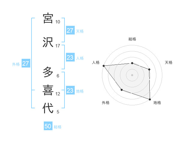 宮沢 多喜代さんを姓名の画数から五運を鑑定
