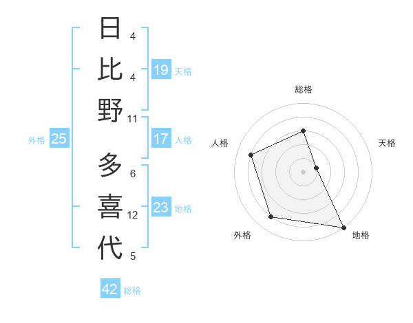 日比野 多喜代さんを姓名の画数から五運を鑑定