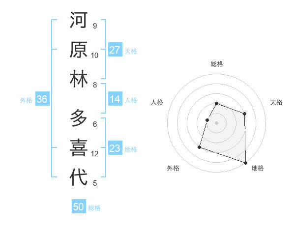 河原林 多喜代さんを姓名の画数から五運を鑑定
