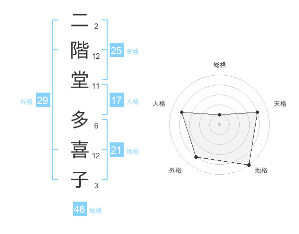 二階堂 多喜子さんの外格は29画の4点!