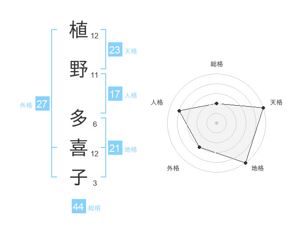 植野 多喜子さんの総格は44画の2点!