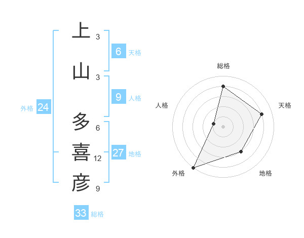 上山 多喜彦さんの総格は33画の4点!
