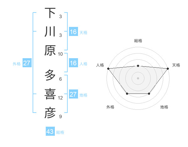 下川原 多喜彦さんを姓名の画数から五運を鑑定