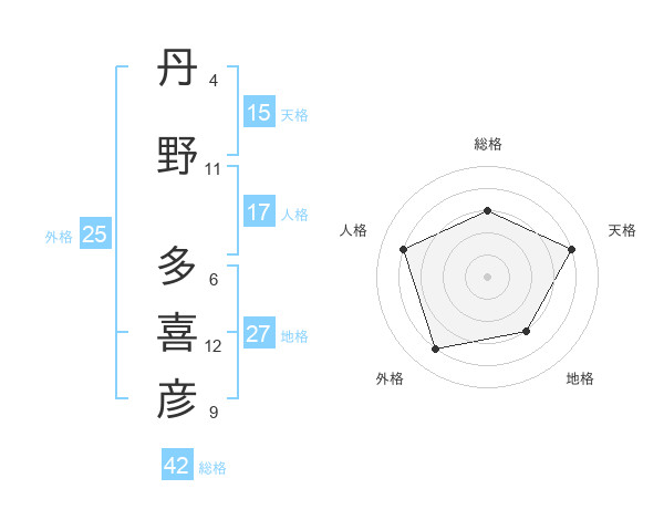 丹野 多喜彦さんを姓名の画数から五運を鑑定