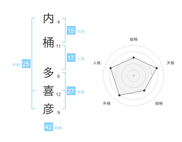 内桶 多喜彦さんを姓名の画数から五運を鑑定