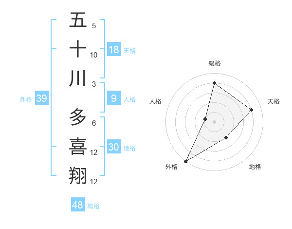 五十川 多喜翔さんを姓名の画数から五運を鑑定