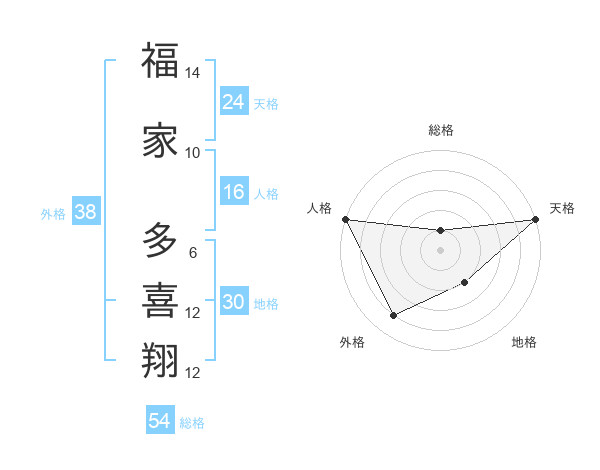 福家 多喜翔さんを姓名の画数から五運を鑑定