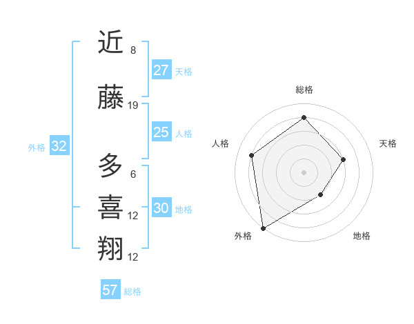近藤 多喜翔さんを姓名の画数から五運を鑑定