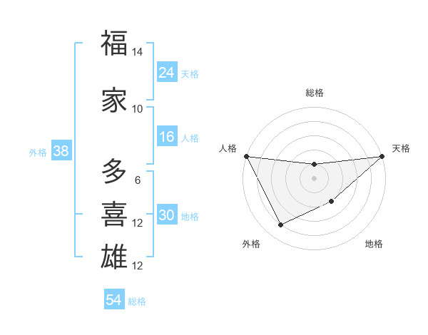 福家 多喜雄さんを姓名の画数から五運を鑑定