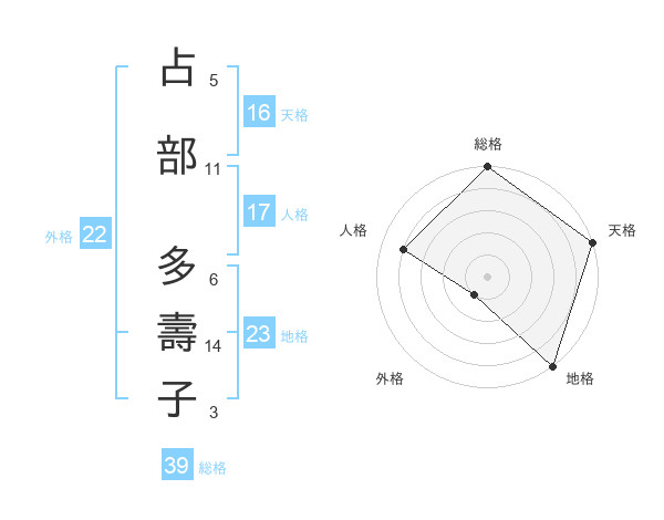 占部 多壽子さんを姓名の画数から五運を鑑定